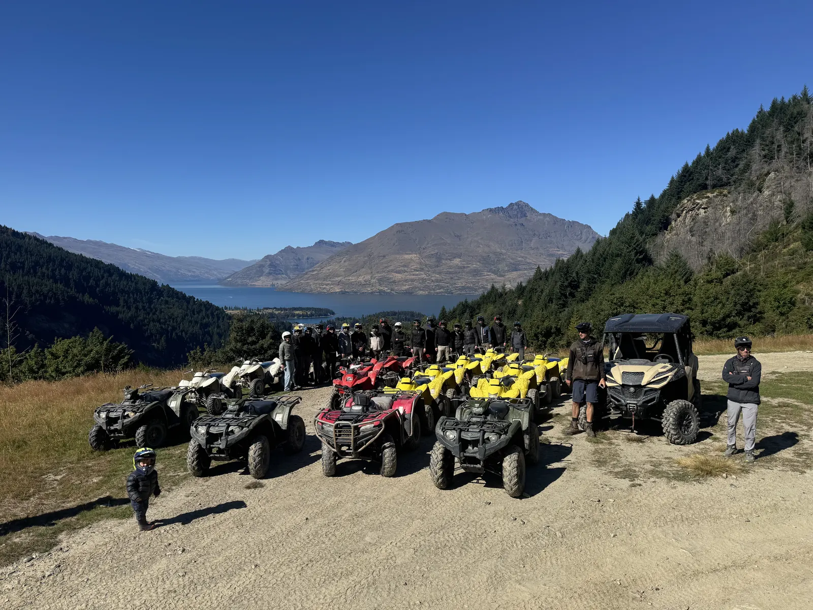 Guided quad bike tours on our private 650-acre property high above Queenstown, with panoramic views across the Shotover River canyon and Lake Wakatipu. Options from entry-level to advanced 4×4 quads, with youth quads available for riders aged 6+. No licence required – we train everyone first.